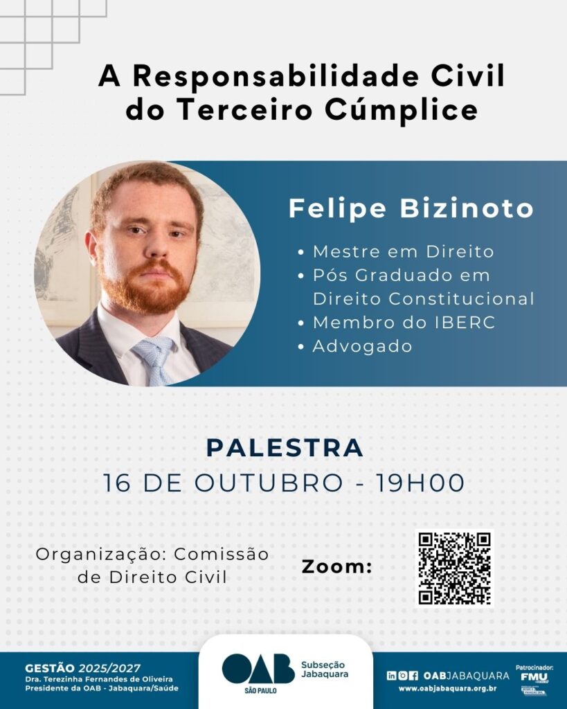 A Comissão de Direito Civil da OAB Jabaquara/Saúde convida para a palestra gratuita: