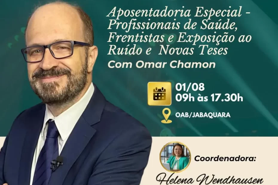 🎓 Tema: Aposentadoria EspecialProfissionais de Saúde, Frentistas, Exposição ao Ruído e Novas Teses 💯 Link para inscrição:🔗 https://www.sympla.com.br/profomar 🎯 Conteúdo Programático: Frentistas– Jurisprudência: TNU, TRU/TRF3… Continue a ler »Mega Curso Presencial em SP com o Mestre OMAR CHAMON