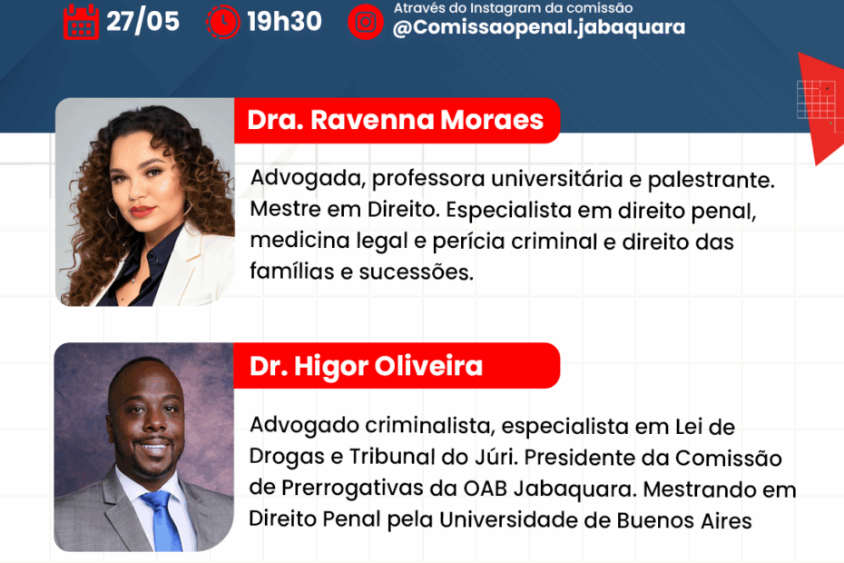 No dia 17 de junho, às 19h30, a Comissão de Direito Penal da OAB Jabaquara convida você para uma live com dois grandes nomes da… Continue a ler »PALESTRA ONLINE | MC POZE DO RODO