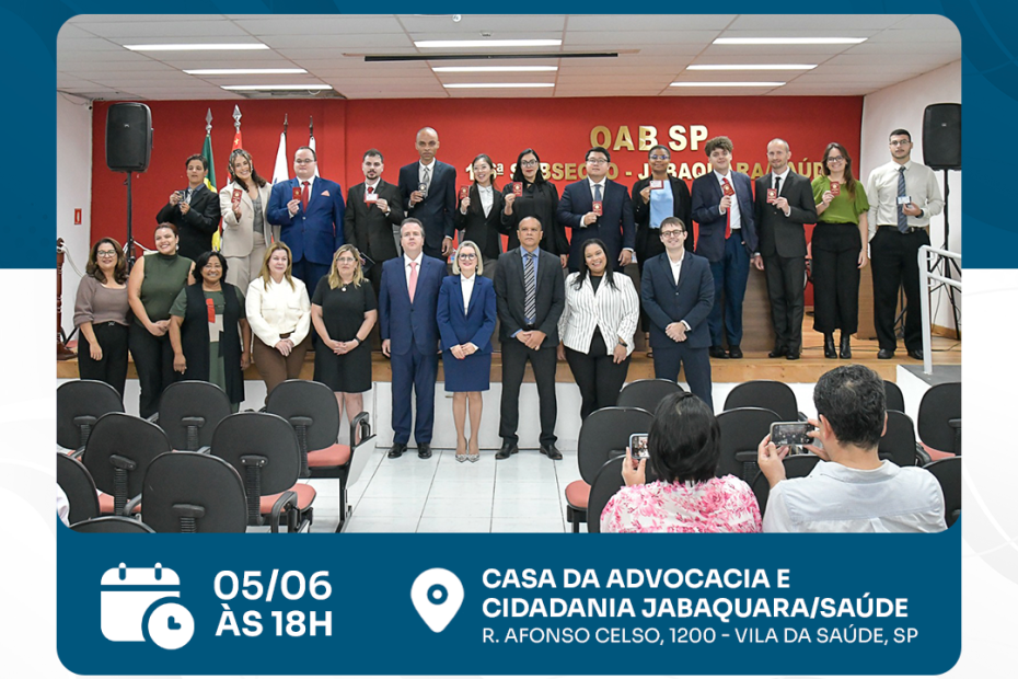 A OAB Subseção Jabaquara convida para a Solenidade de Entrega de Carteiras, que acontecerá no dia 05 de junho! Um momento único e simbólico para… Continue a ler »Solenidade de Entrega de Carteiras