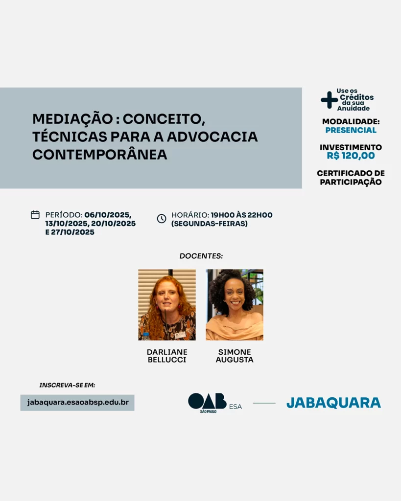 ⚖ Destinado a: advogados em dia com a OAB/SP, estagiários, bacharéis e profissionais de outras áreas com curso superior.